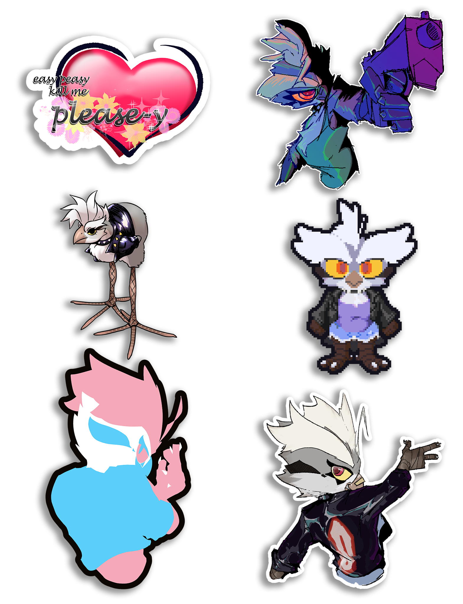 A collection of stickers designed and drawn by frog_0 (@hversicolor). Can be purchased as a bundle or individually.